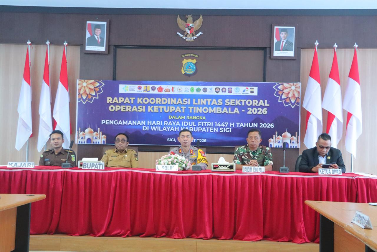 Sigi, Caralain.id – Dalam rangka memperkuat sinergi dan kesiapsiagaan pengamanan Hari Raya Idul Fitri 1447 H/2026 M, Kapolres Sigi AKBP Kari Amsah Ritonga, S.H., S.I.K., M.H., memimpin Rapat Koordinasi Lintas Sektoral Operasi Ketupat Tinombala 2026 di wilayah Kabupaten Sigi, Kamis (12/3/2026).